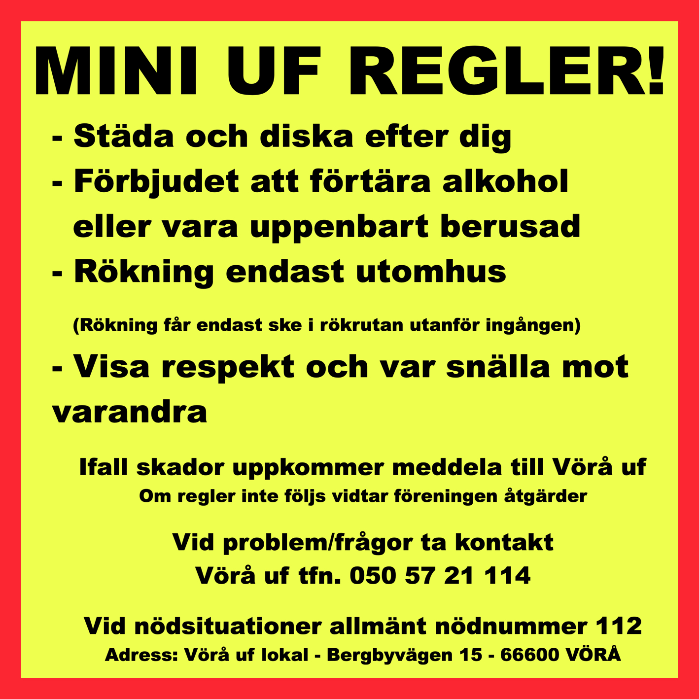 Ungdomsutrymmet miniuf med arrangör Vörå uf, följer normalt skolkalendern.